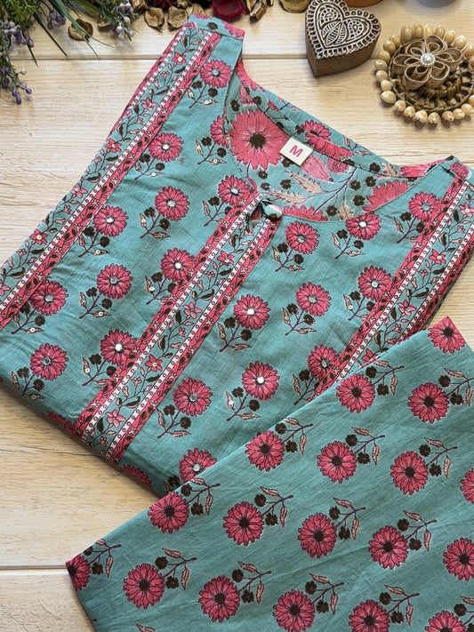 Dim Green floral embroidery kurti