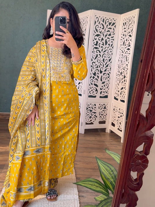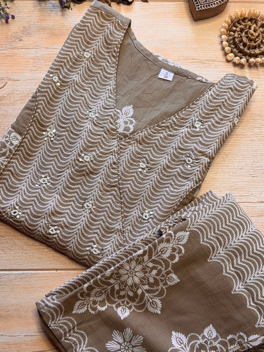 Ethnic grometric stripes pattern:- Wheatish sitara kurti