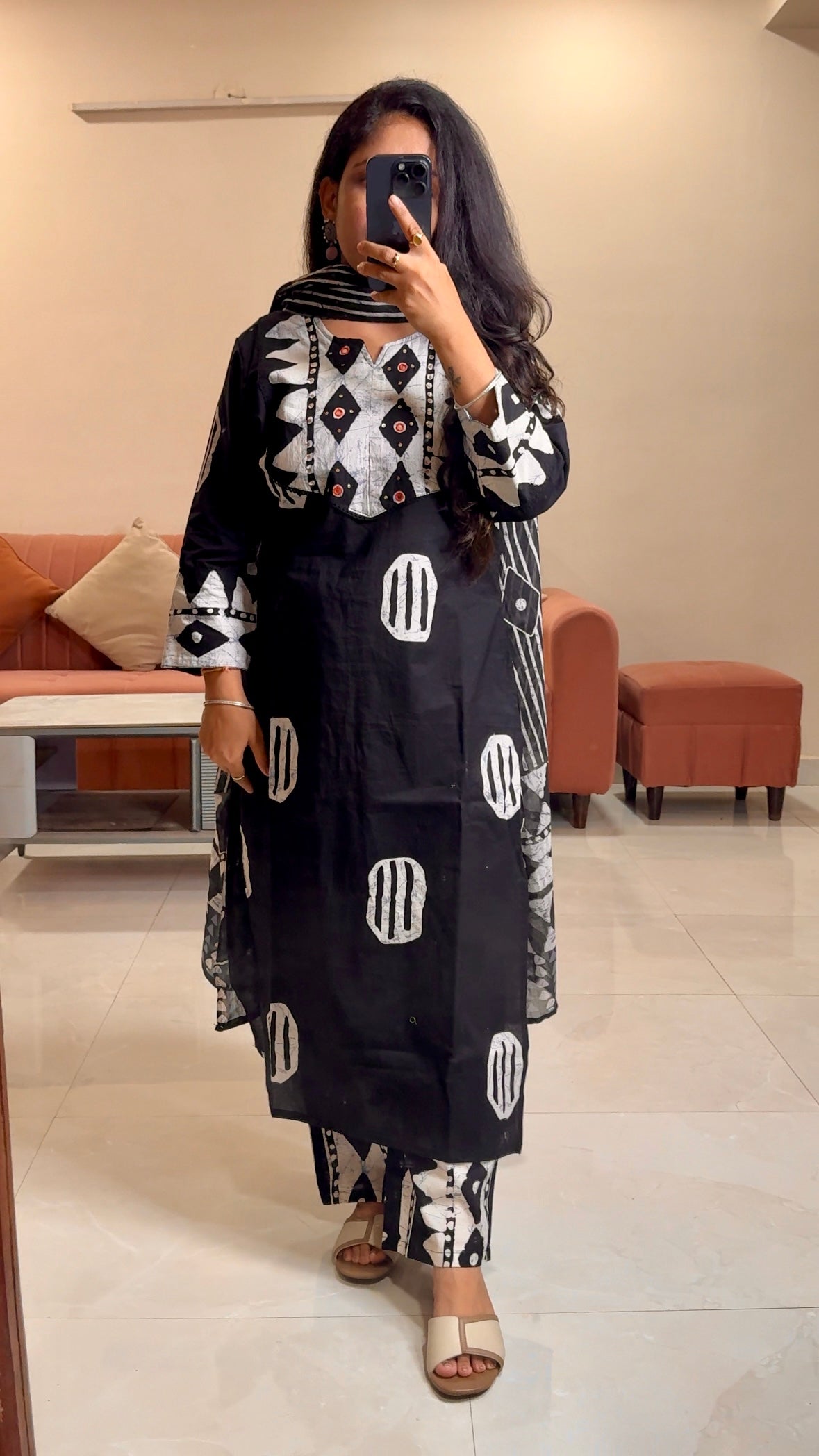 Slay it with our beautiful cotton printed kurta set having embroidered neckline paired with printed dupatta, and pants
