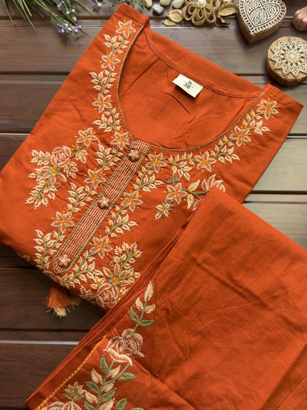 Get your hands on our most decent embroidered kurta made in beautiful colour combination and embroidery all over paired with embroidery motifs dupatta,and embroidered hem pants.